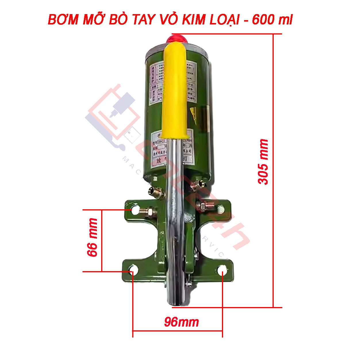 Bơm mỡ bò tay vỏ kim loại có dung tích 600ml hoặc 1200ml, đều có đế và thân bình bằng kim loại. Đường kính ống ngõ ra 10 mm, tặng kèm đầu chuyển ống 6mm. Phù hợp mỡ bò 000 – 0.