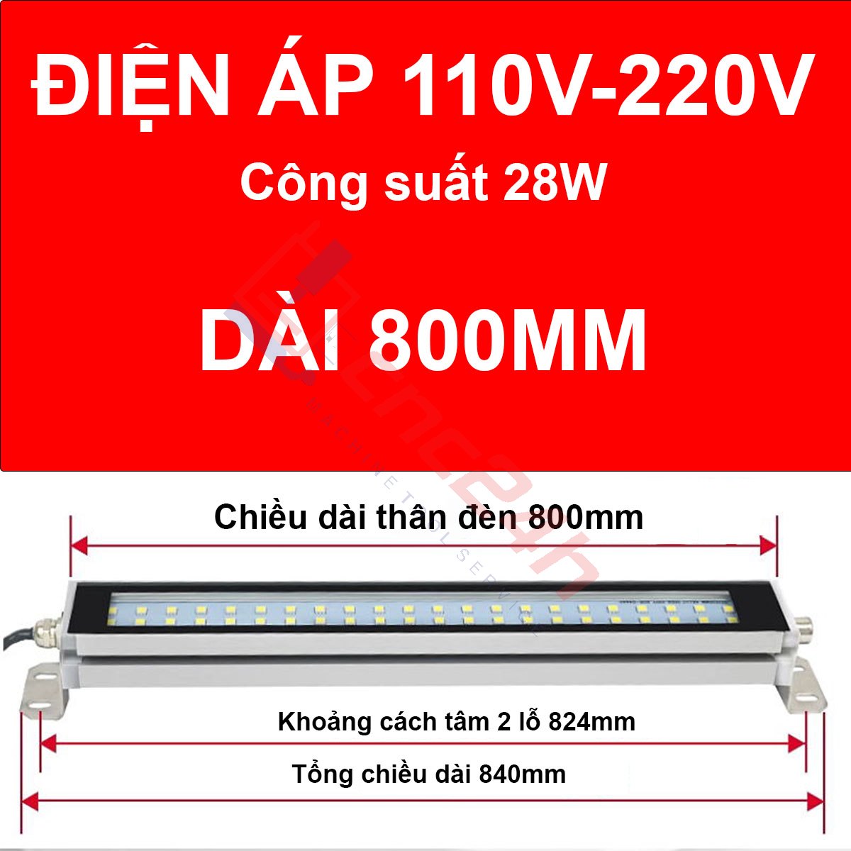 Công suất đèn: 12W (400mm), 19W (600mm), 28W (800mm)