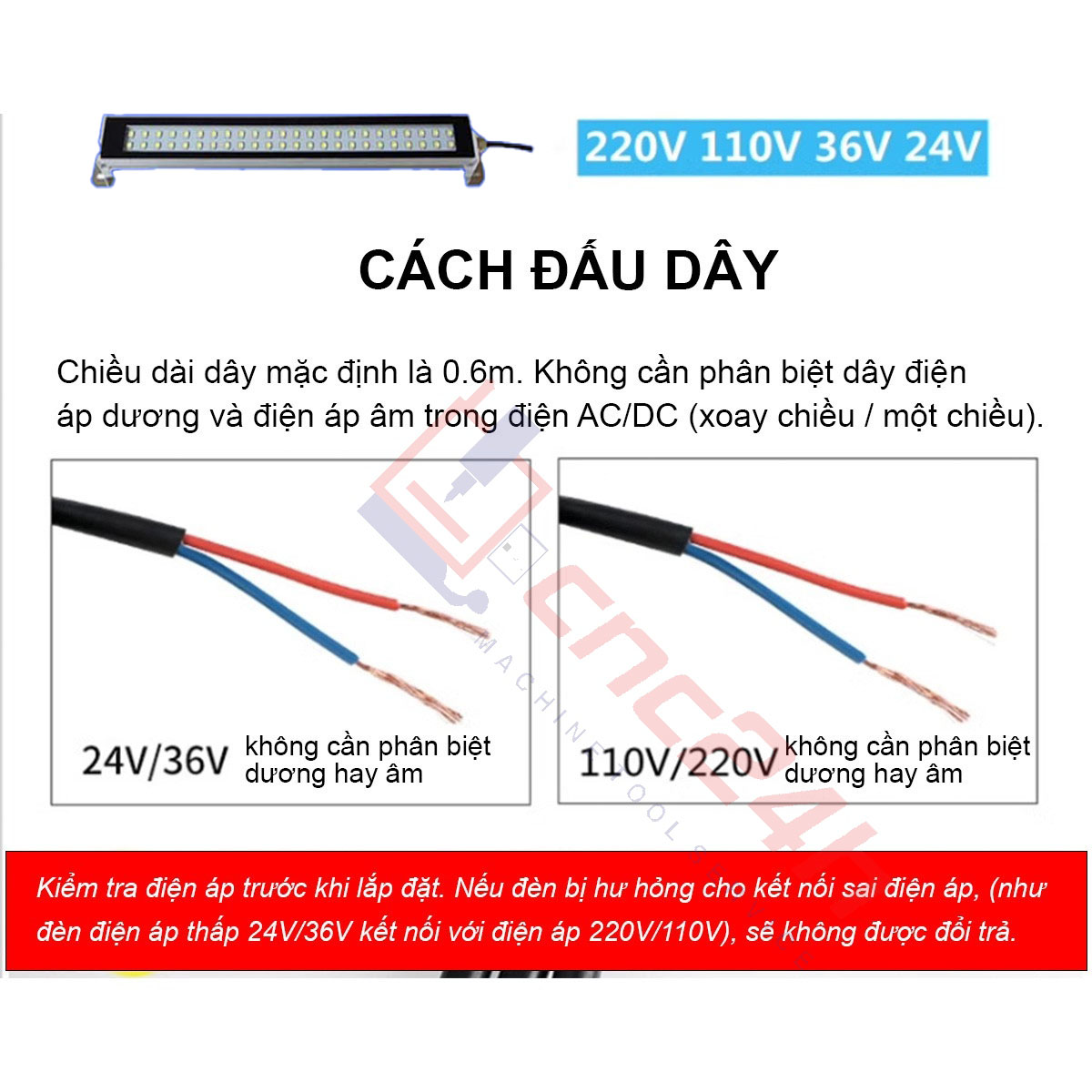 Đấu dây: chiều dài dây mặc định là 0.6m, không cần phân biệt điện áp dương và điện áp âm trong điện AC / DC (xoay chiều / một chiều)